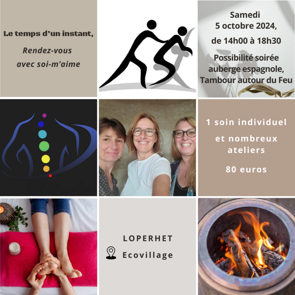 C’est au coin du feu que nous poursuivrons notre soin, au doux son du tambour chamanique, suivi d’un repas type auberge espagnole avec de la musique et du chant en toute liberté pour clôturer notre belle journée.
